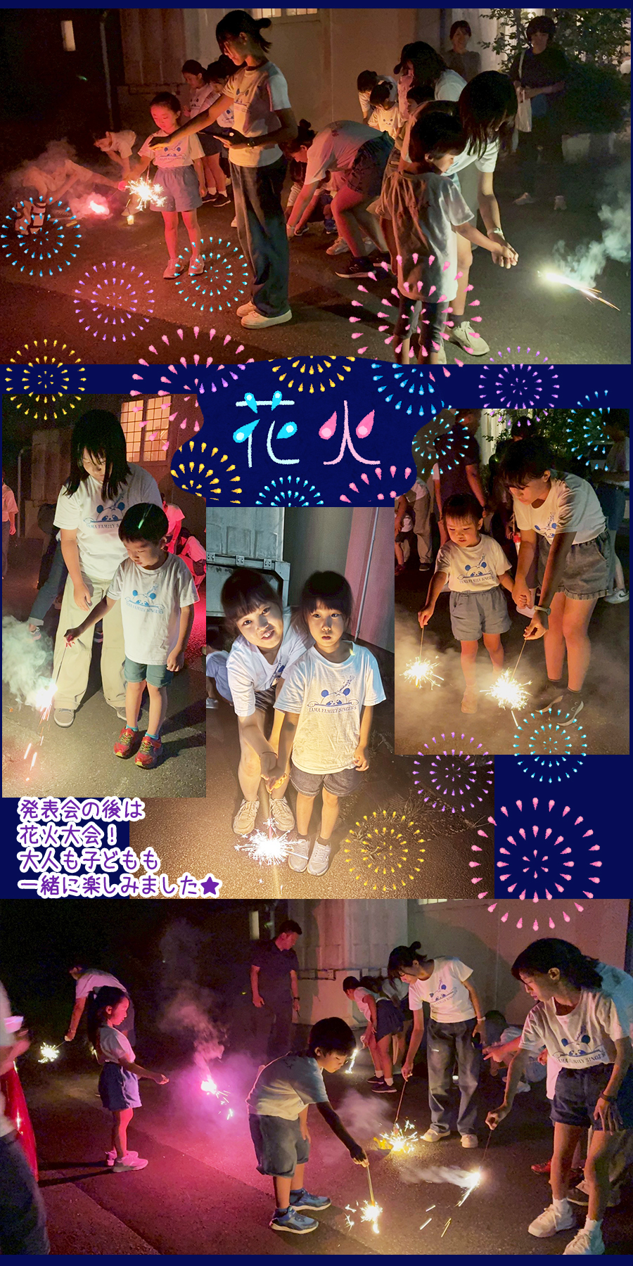 夜の発表会の後はみんな大好き花火大会です。